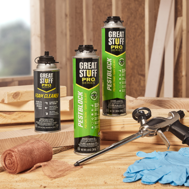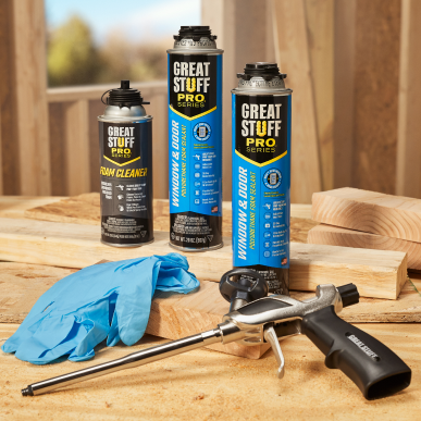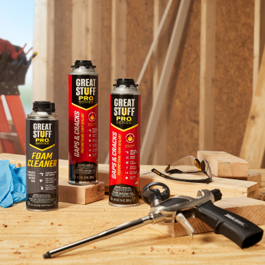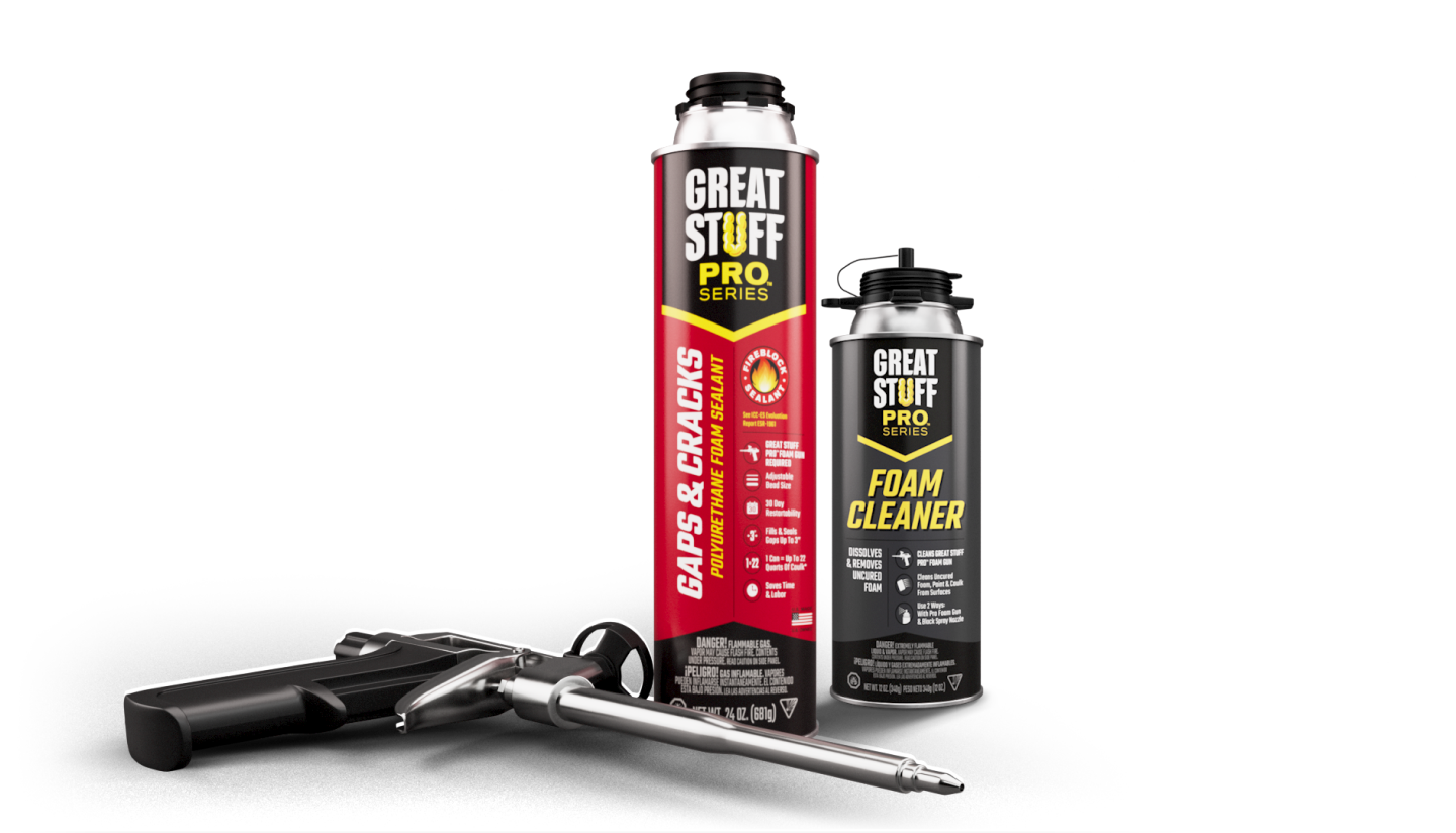 When using the Great Stuff Pro™ Series, it’s important to use all three products together. The foam sealant, Pro 14 Dispensing Gun, and foam cleaner combine to multiply value, optimize control, maintain performance, and speed up cleanup.