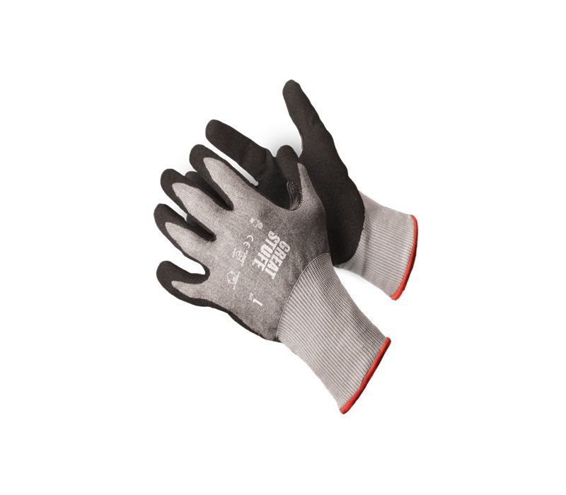 The GREAT STUFF™ Cut Protection Work Gloves offer cut protection and an unmatched grip in wet and dry conditions. Crafted with an HPPE/steel/fiberglass blend shell, these gloves offer 360° cut resistance, providing reliable protection in demanding environments. The reinforced thumb saddle offers enhanced durability. The elastic knit wrist prevents dirt and debris from entering, safeguarding your hands from grease, oils, hydrocarbons, and abrasions.