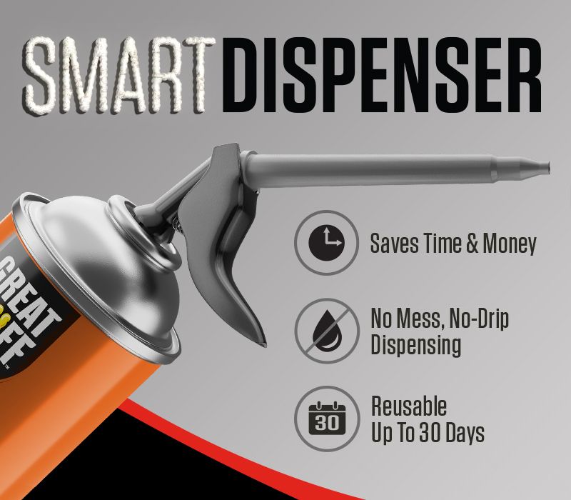 A. The Smart Dispenser™ from the Great Stuff™ brand is a game-changing, industry best dispenser for one component can sealants. Addressing all of the pain points of standard straw dispensers, the Smart Dispenser™ uses integrated mechanical parts to improve the user experience with Great Stuff Insulating Foam Sealants: Reusable up to 30 days; use it again and again! No dripping; the foam stops as you stop, as the trigger is released the foam ceases to dispense. Increased precision with more control and less mess, air seal with ease with the Smart Dispenser™.
