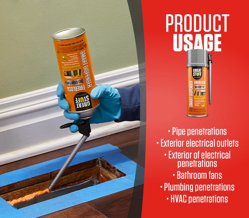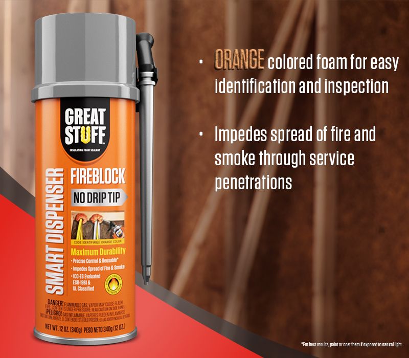 Designed to help save much more than energy costs, GREAT STUFF™ Fireblock Insulating Foam Sealant insulates and seals service penetrations, providing an airtight barrier that impedes the spread of smoke and flames