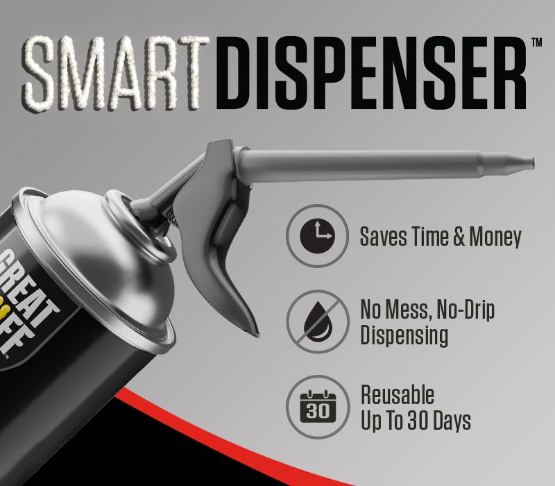 A. The Smart Dispenser™ from the Great Stuff™ brand is a game-changing, industry best dispenser for one component can sealants. Addressing all of the pain points of standard straw dispensers, the Smart Dispenser™ uses integrated mechanical parts to improve the user experience with Great Stuff Insulating Foam Sealants: Reusable up to 30 days; use it again and again! No dripping; the foam stops as you stop, as the trigger is released the foam ceases to dispense. Increased precision with more control and less mess, air seal with ease with the Smart Dispenser™.