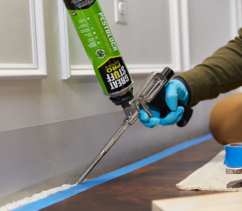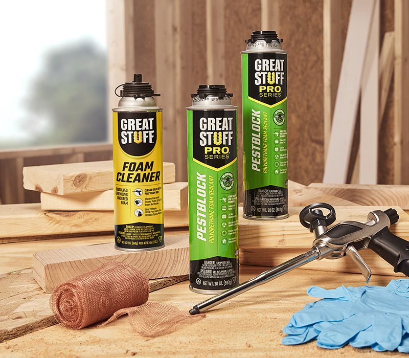 The convenience of the Great Stuff™ Pestblock Foam Sealant Kit has everything you need to help reduce unwanted pests without the use of pesticides. GREAT STUFF PRO™ Pestblock Polyurethane Foam Sealant expands to form a long-lasting, airtight, and water-resistant barrier that blocks critters from entering the home while boosting energy efficiency.