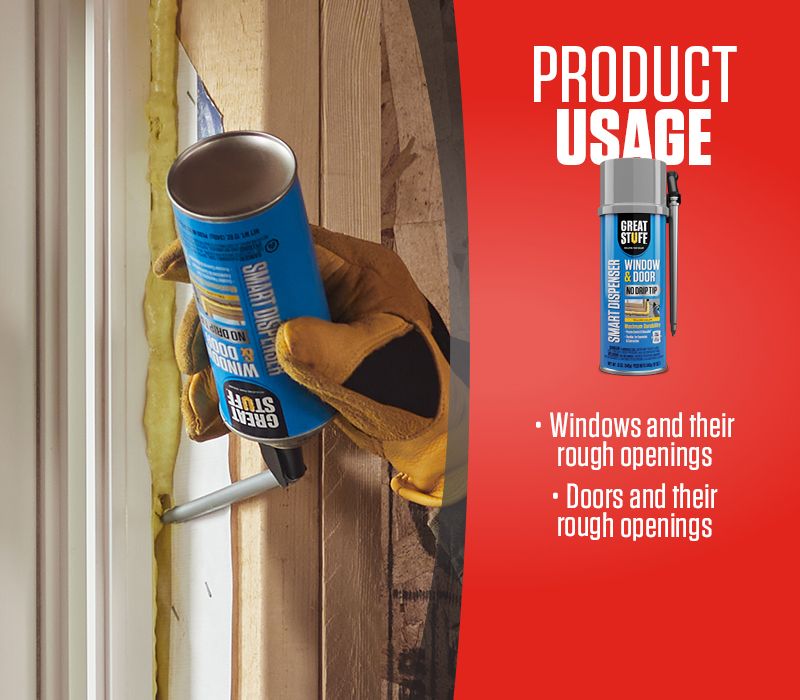 Flexible and easy to apply, GREAT STUFF™ Window & Door Insulating Foam Sealant quickly and cleanly forms airtight, water-resistant seals between framework and rough openings that withstand the elements.